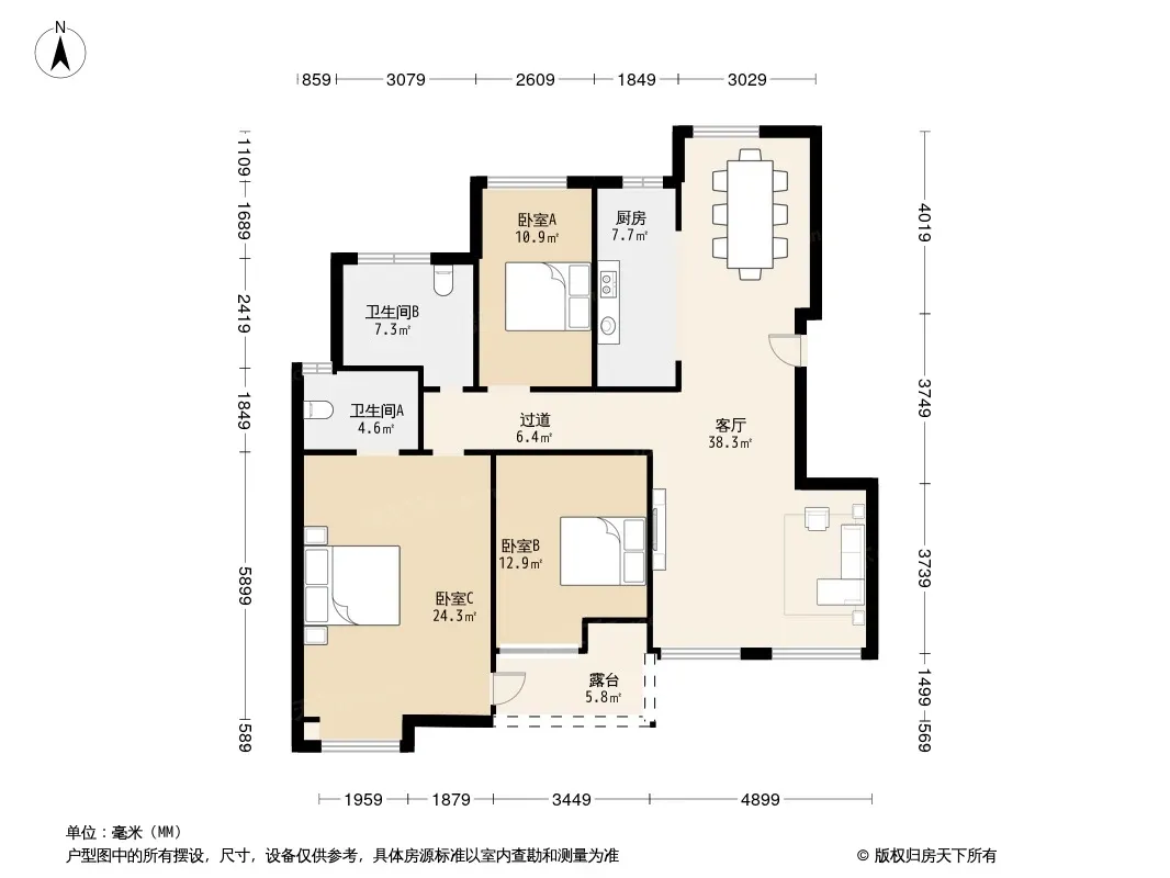 户型齐全,主打南北通透,全明格局,采光充足三居