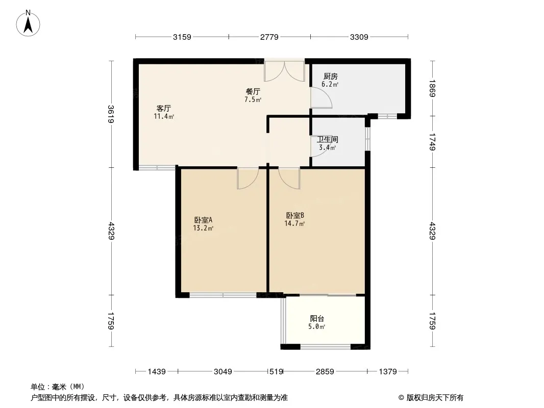 户型齐全,主打南北通透,全明格局,采光充足三居