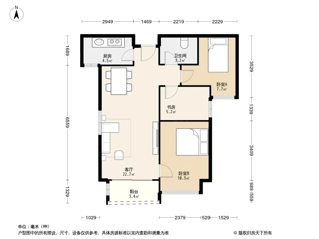 户型齐全,主打南北通透,全明格局,采光充足三居