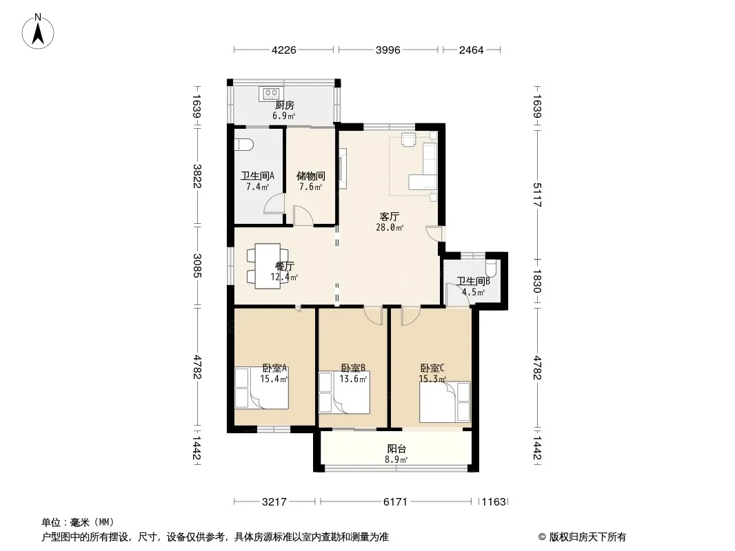 户型齐全,主打明厨,明卫,客厅朝南,双阳台,主卧朝南三居