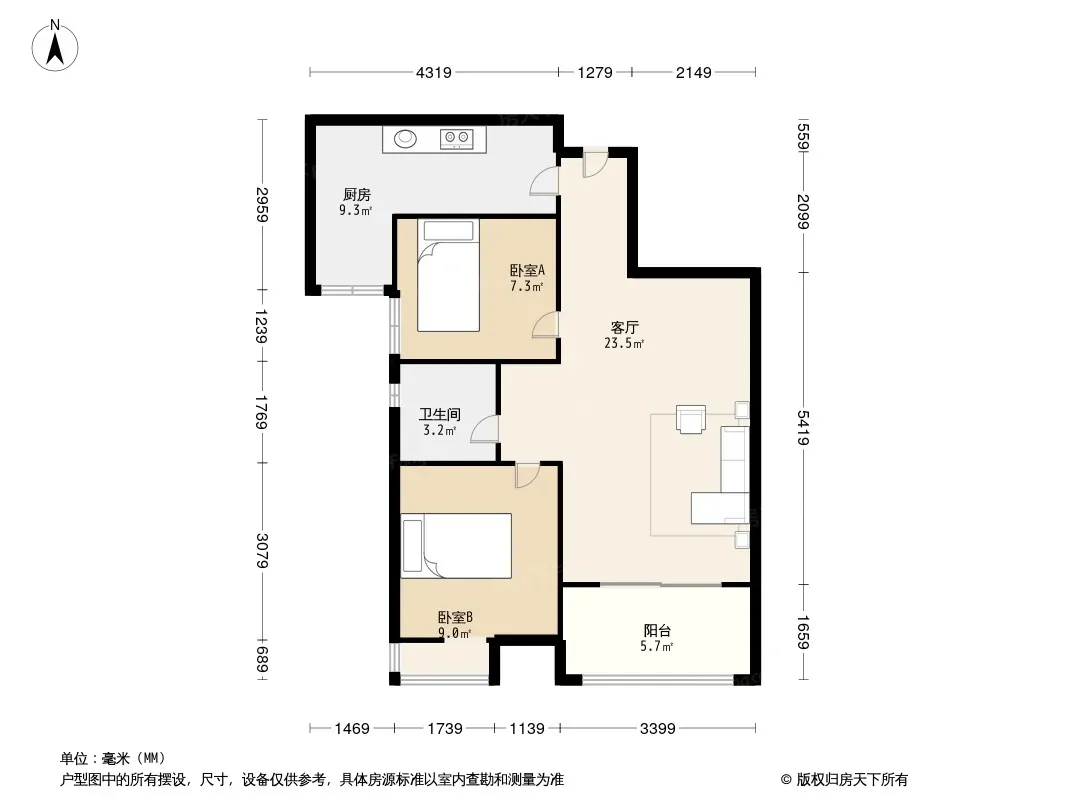 户型齐全,主打明厨,主卧朝南二居