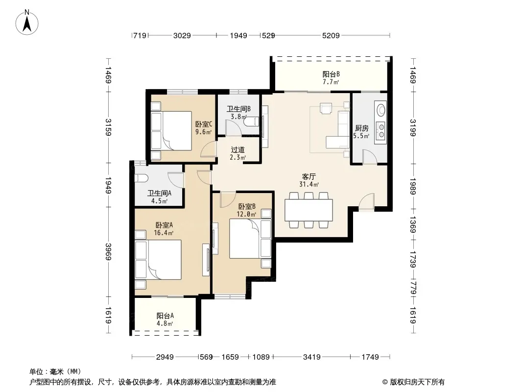 *获取完整户型报告,同时会有免费语音讲解服务