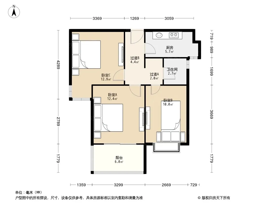 户型齐全,主打双阳台,双卧朝南,主卧朝南二居
