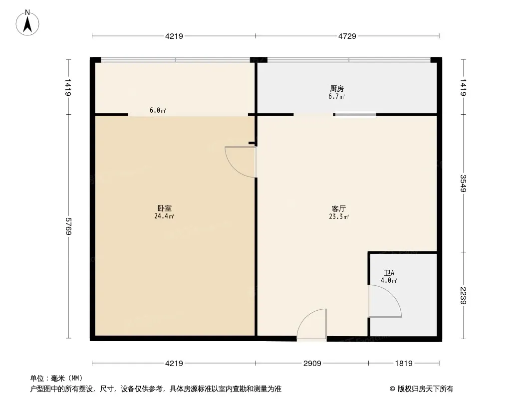 户型齐全,主打明厨,客厅朝南一居