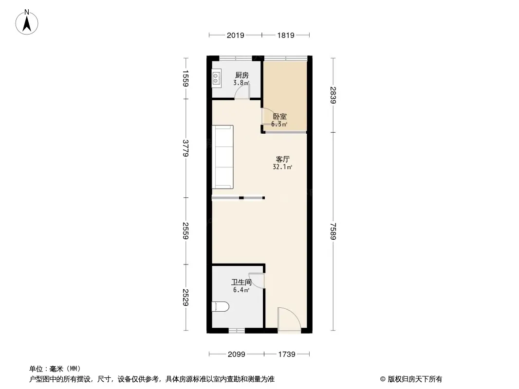 户型齐全,主打明厨,客厅朝南二居
