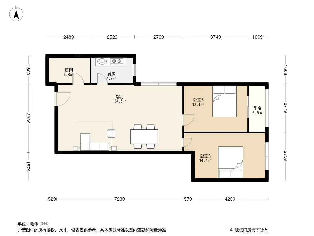 户型齐全,主打明厨,客厅朝南二居