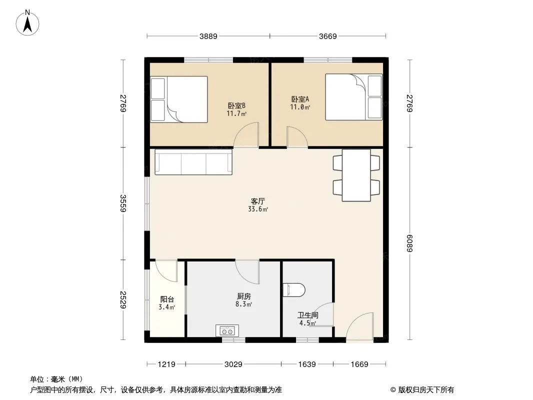 户型齐全,主打明厨,客厅朝南二居