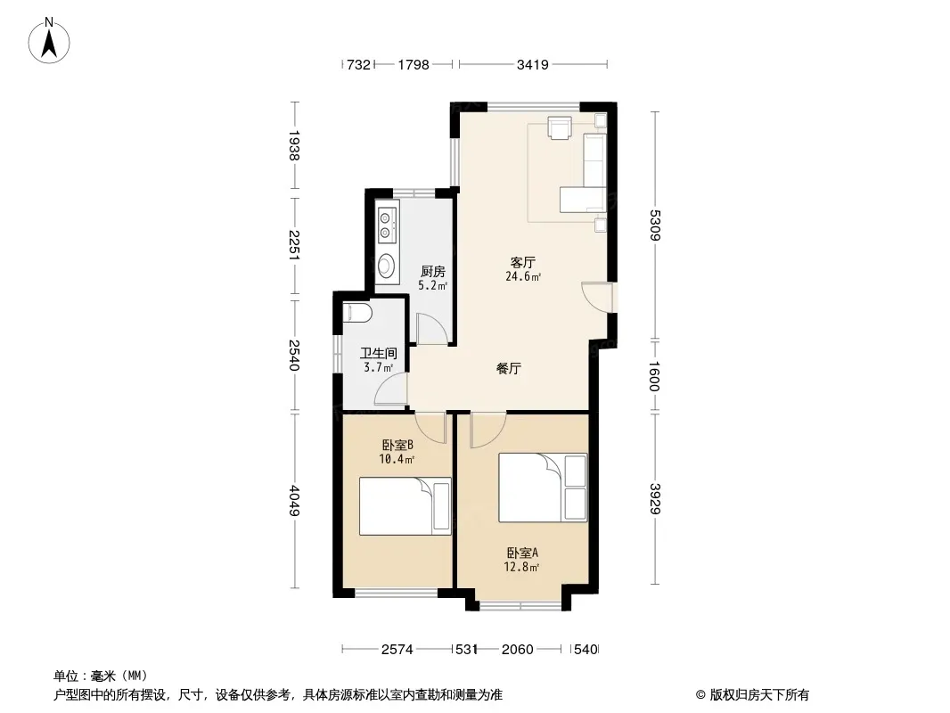 户型齐全,主打明厨,双卧朝南三居