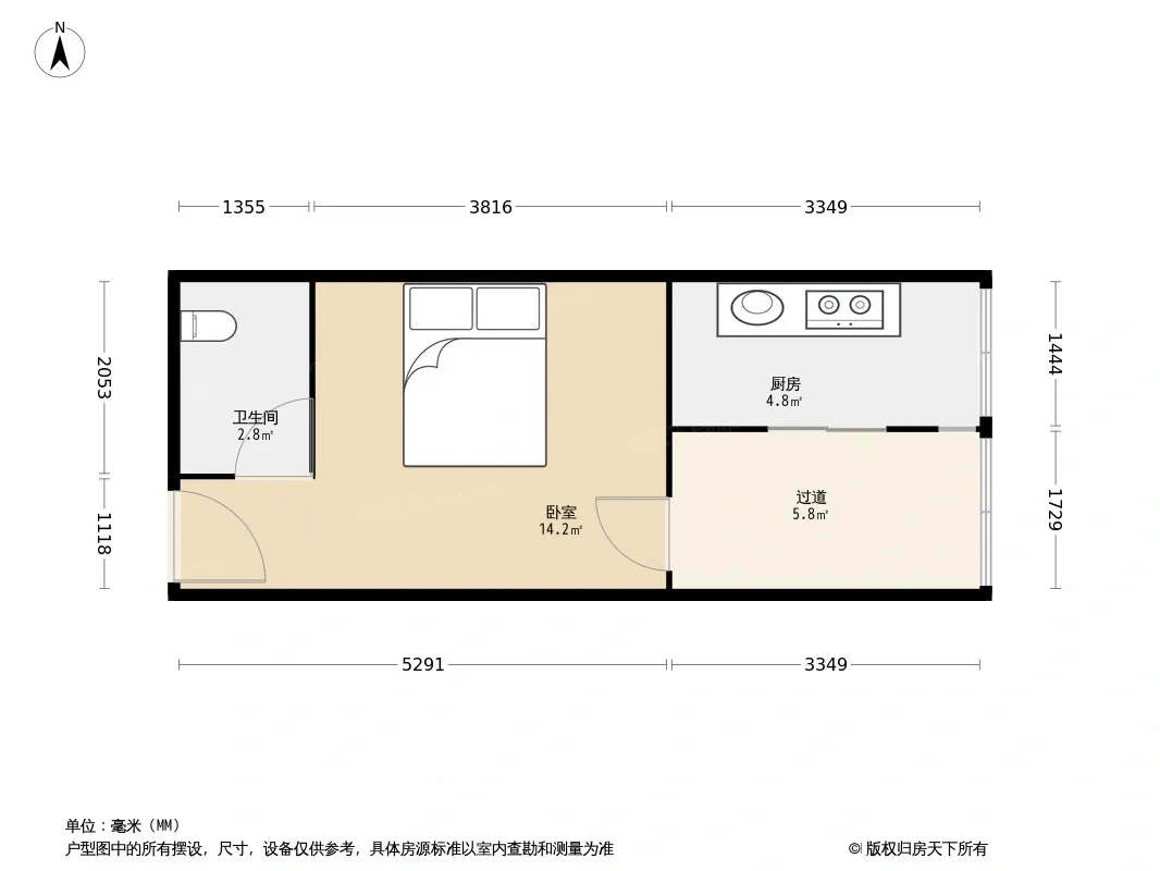 户型齐全,主打明厨,客厅朝南一居