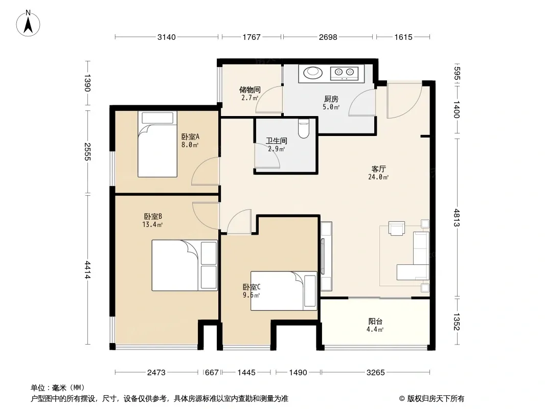 户型齐全,主打明卫,双阳台,双卧朝南,主卧朝南三居
