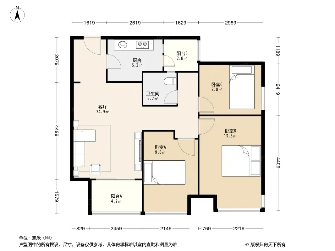户型齐全,主打明卫,双阳台,双卧朝南,主卧朝南三居
