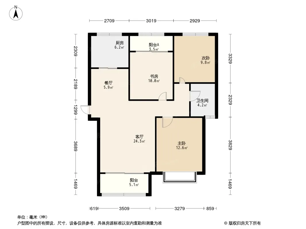 户型齐全,主打厨卫不对门,户型方正,主卧朝南三居