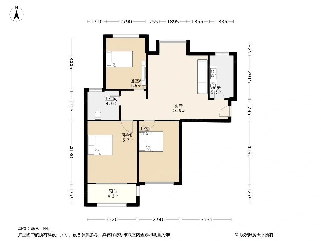 户型齐全,主打明卫,客厅朝南,主卧朝南三居