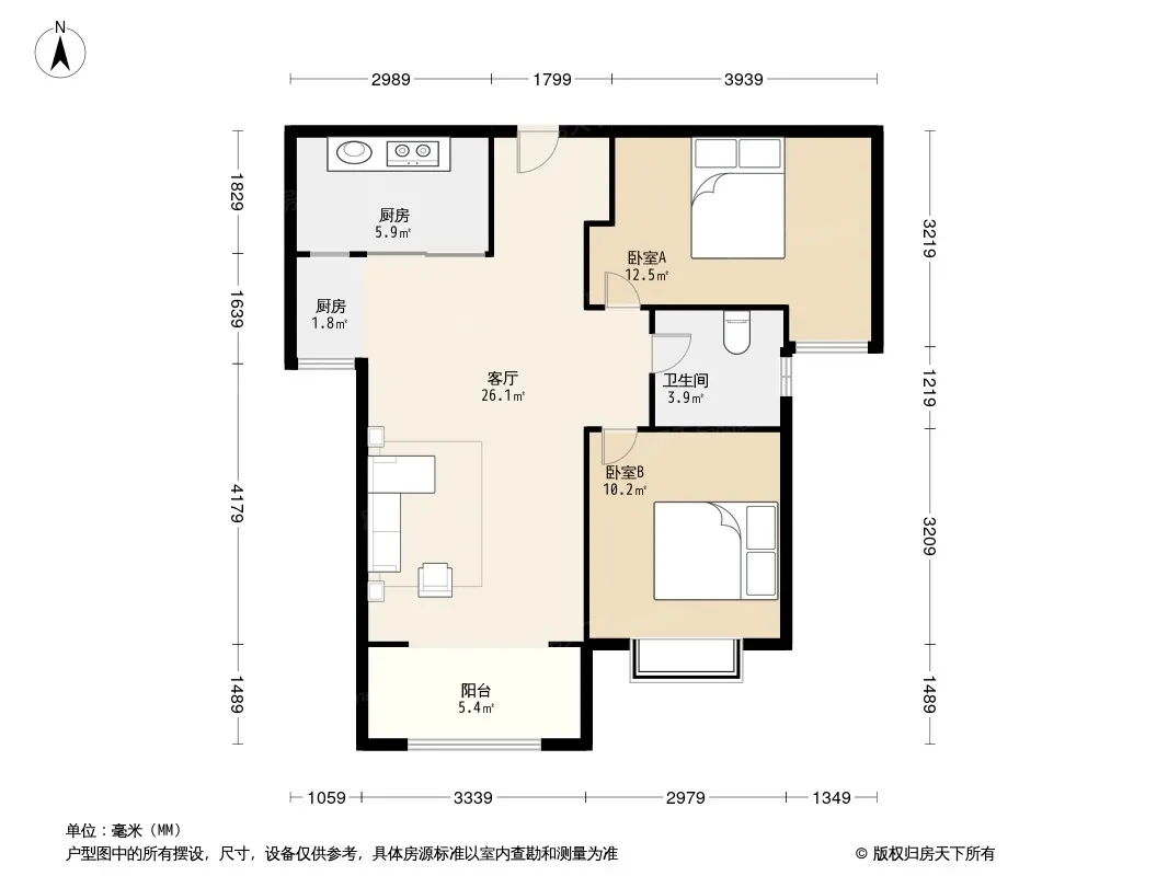 户型齐全,主打明卫,双阳台,主卧朝南三居