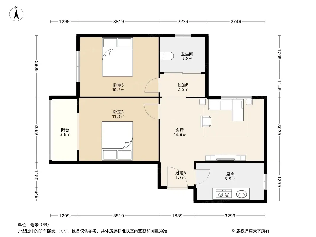 户型齐全,主打主卧朝南,观景飘窗,全明格局二居