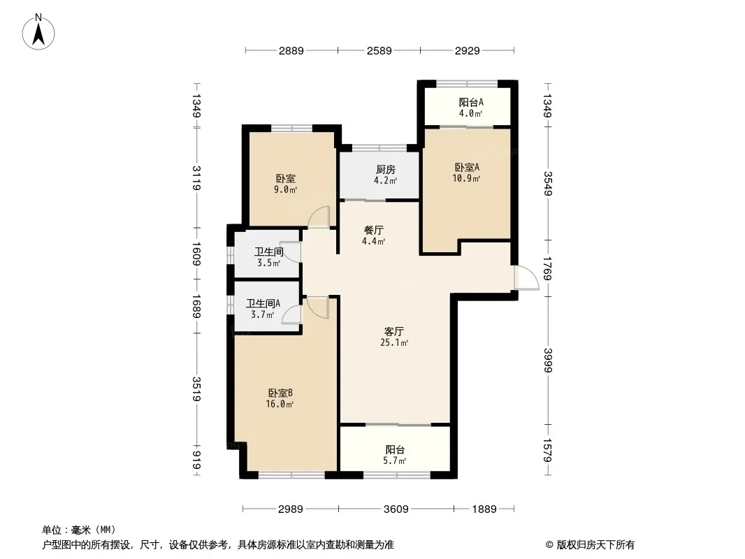 户型齐全,主打南北通透,户型方正,客厅朝南,主卧朝南,卧室带阳台三居