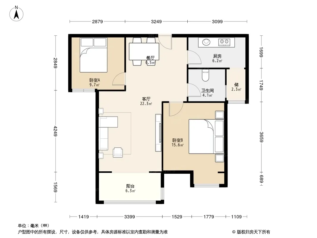 户型齐全,主打明厨,明卫,双卧朝南,主卧朝南三居
