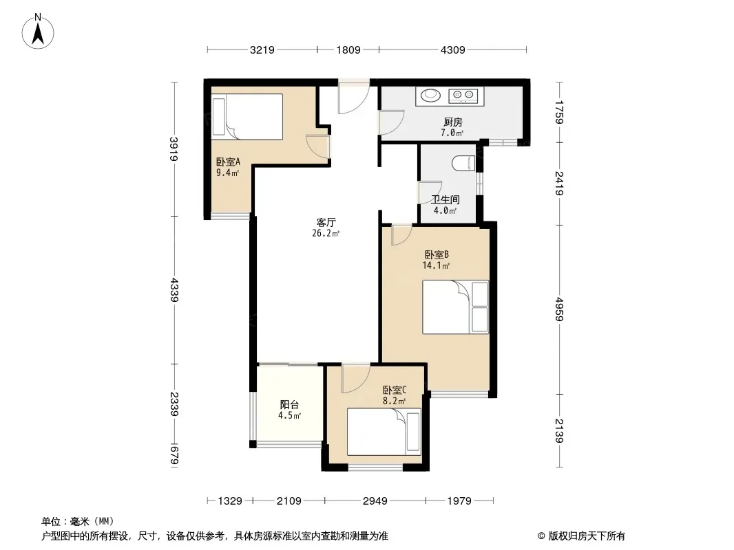 户型齐全,主打厨卫不对门,户型方正,主卧朝南,观景飘窗三居