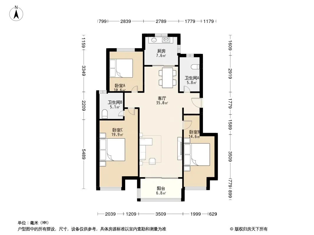 户型齐全,主打南北通透,全明格局,客厅朝南,主卧朝南,厨卫不对门,明厨明卫,干湿分离三居