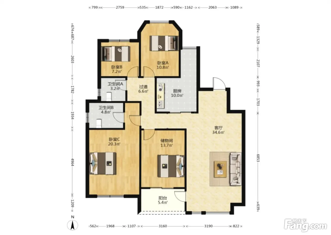 保利海上五月花玫瑰园 4室2厅 南 北
