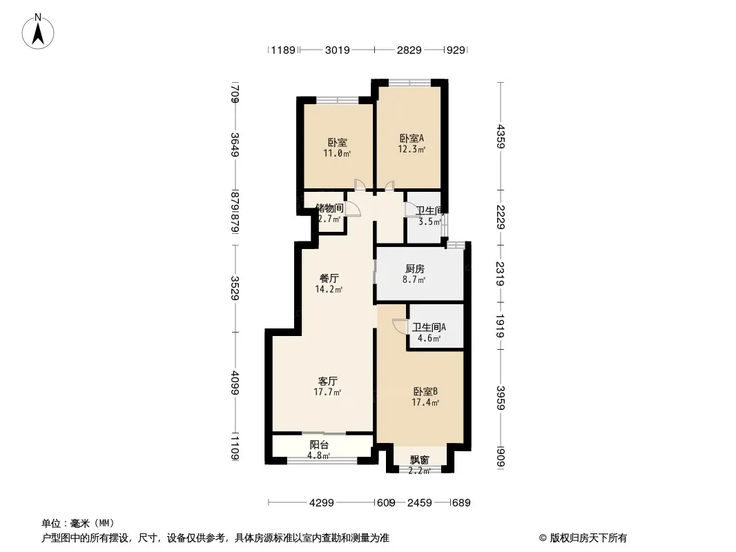 户型齐全,主打南北通透,主卧带卫,客厅朝南,观景飘窗三居
