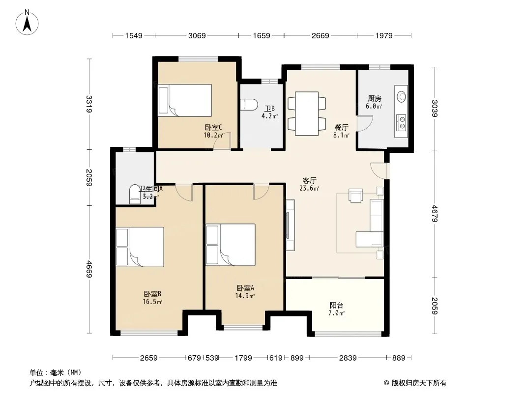 户型齐全,主打南北通透,客厅朝南,主卧朝南三居