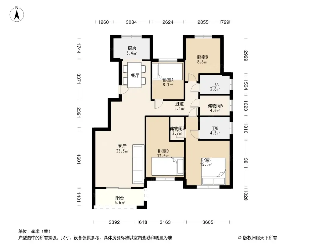 户型齐全,主打明卫四居