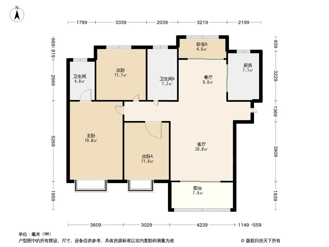户型齐全,主打全明格局,卧室朝南,双阳台三居