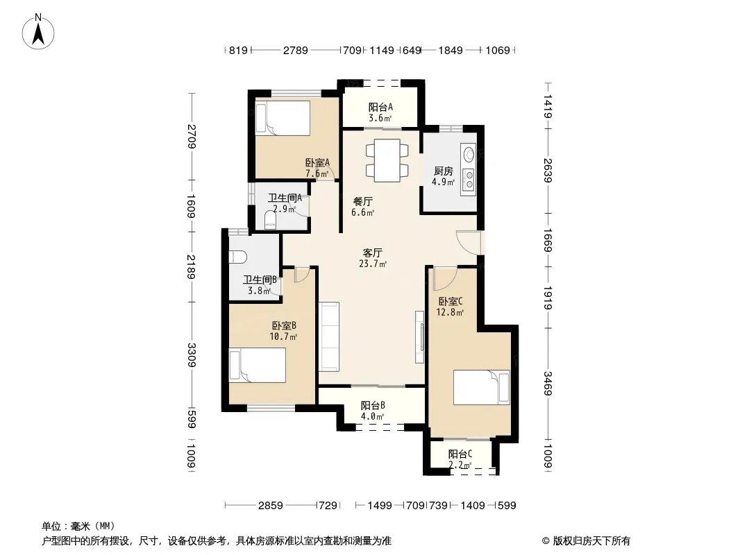 户型齐全,主打南北通透,主卧带卫,干湿分离三居
