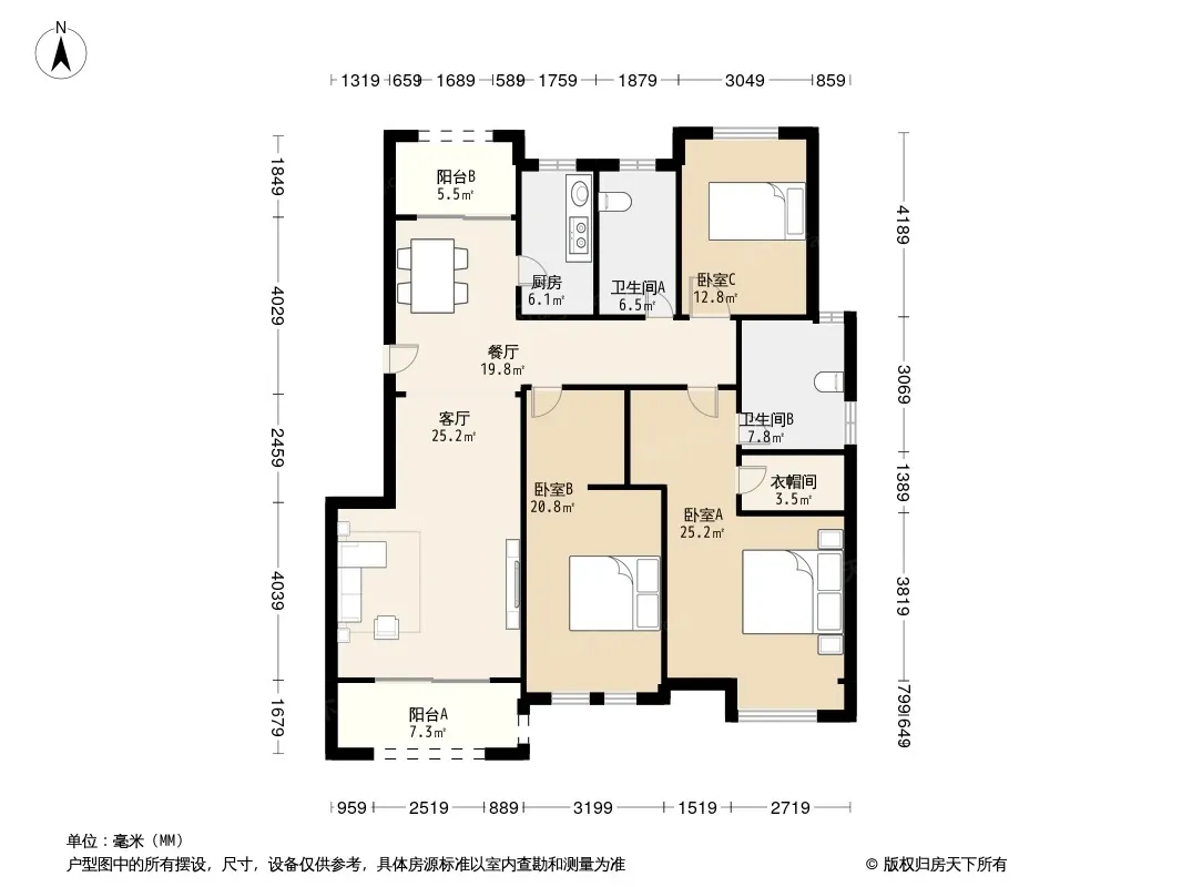 户型齐全,主打南北通透,主卧带卫,干湿分离三居