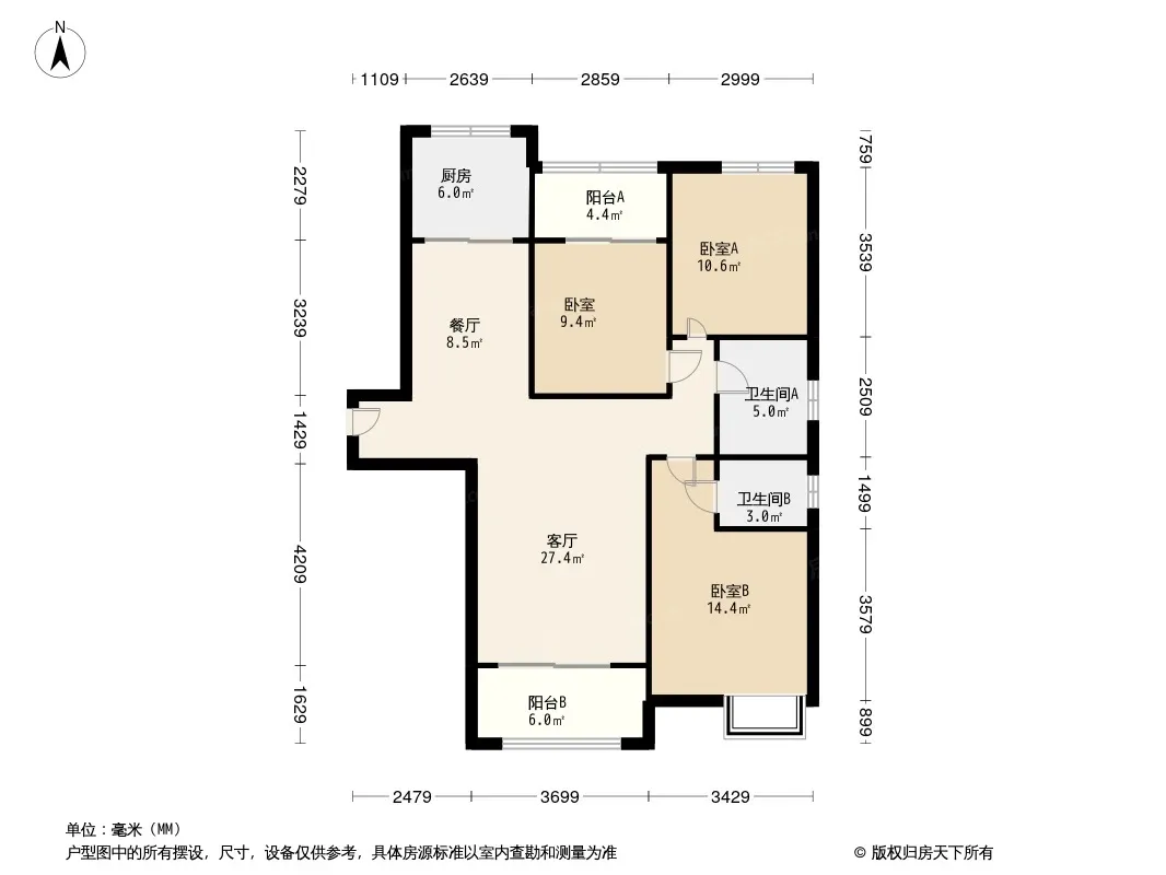 户型齐全,主打南北通透,全明格局,客厅朝南三居
