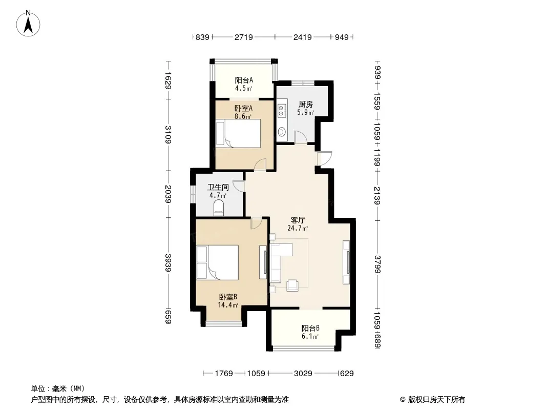 户型齐全,主打明卫,明厨,双阳台,主卧朝南二居