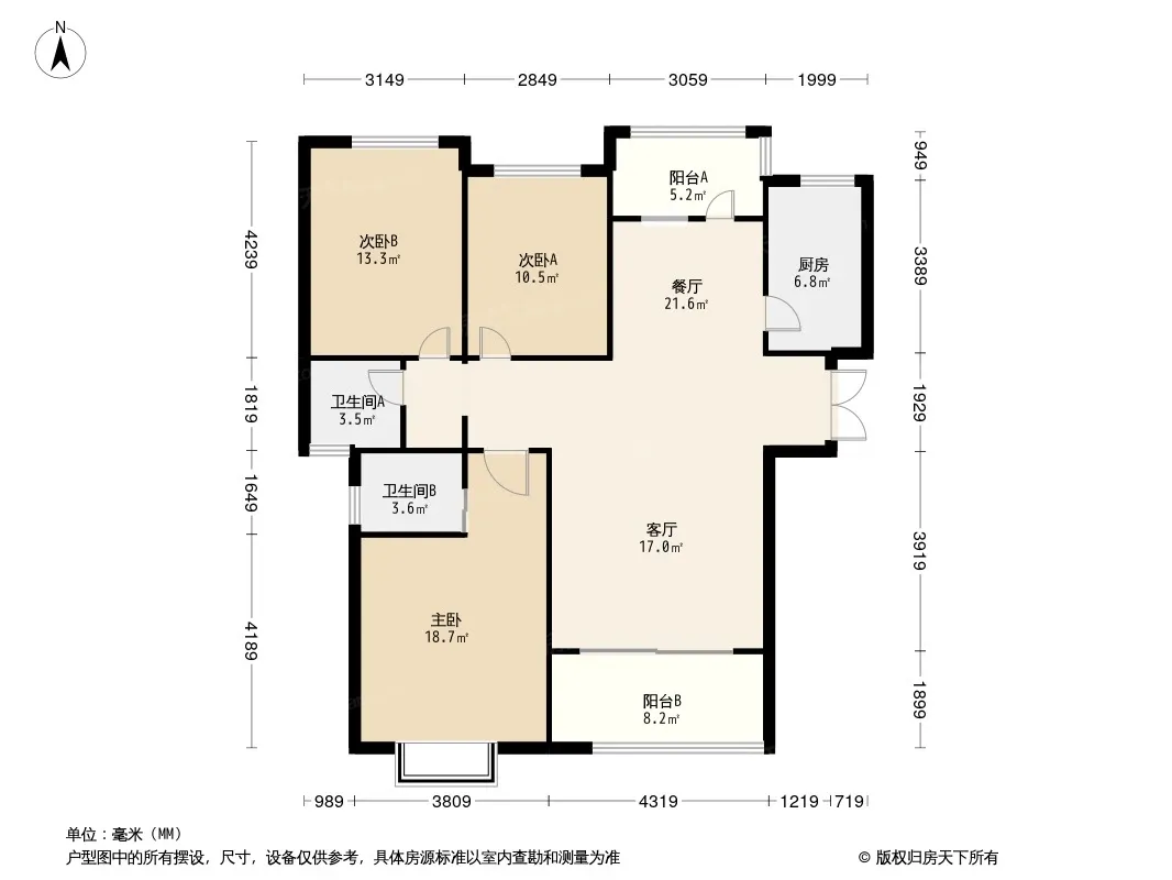 户型齐全,主打全明格局,户型方正,动静分离三居