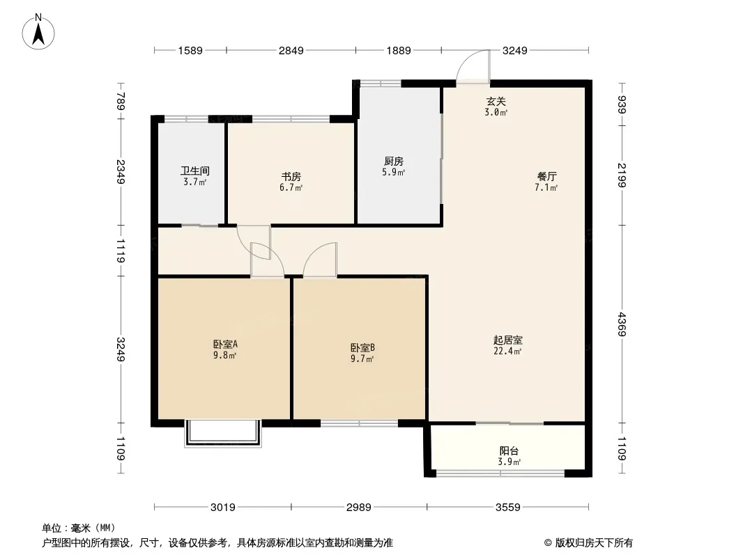 户型齐全,主打南北通透,客厅朝南,主卧朝南,主卧带卫三居