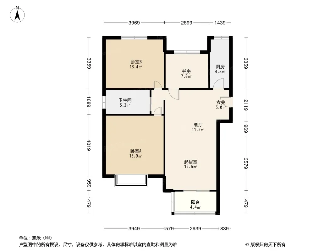 户型齐全,主打南北通透,客厅朝南,主卧朝南,主卧带卫三居