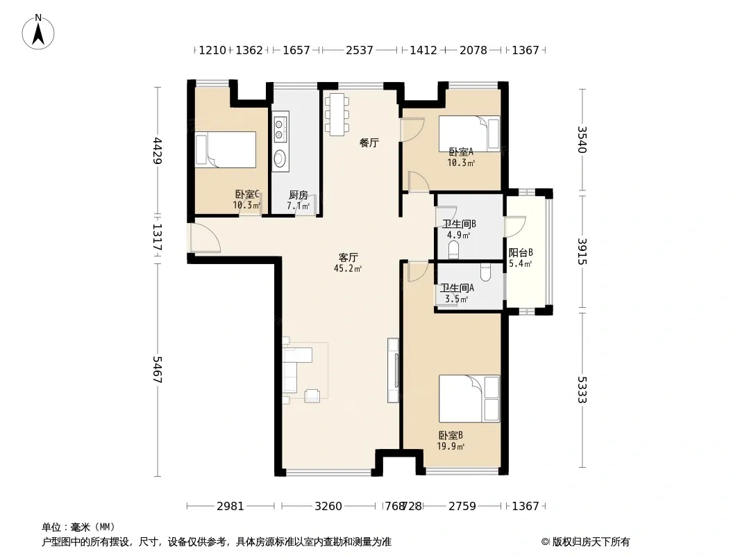 户型齐全,主打明厨,双阳台,主卧朝南三居
