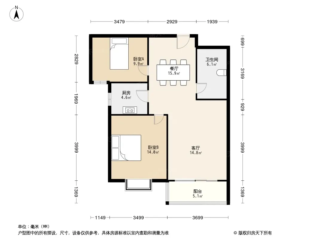 户型齐全,主打南北通透,飘窗三居