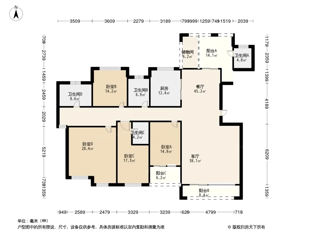 户型齐全,主打南北通透四居