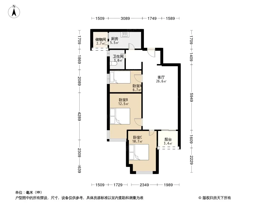 户型齐全,主打南北通透,主卧带卫,客厅朝南,主卧朝南,带衣帽间三居