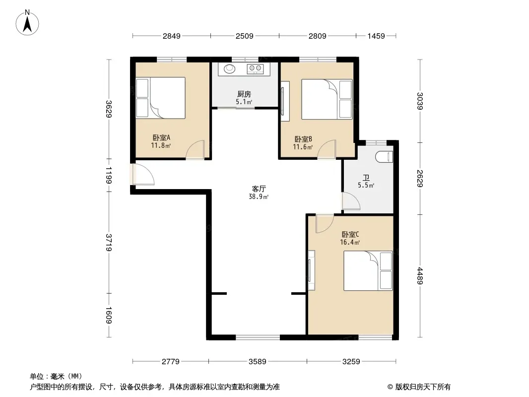3室2厅1卫