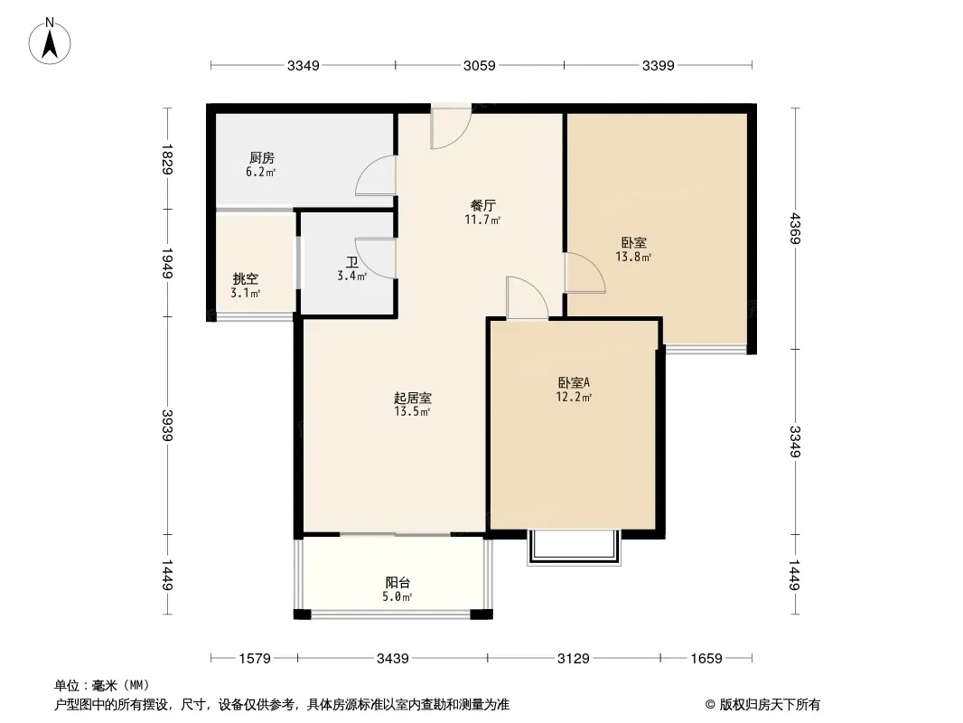 户型齐全,主打南北通透,客厅朝南,主卧朝南,观景飘窗三居
