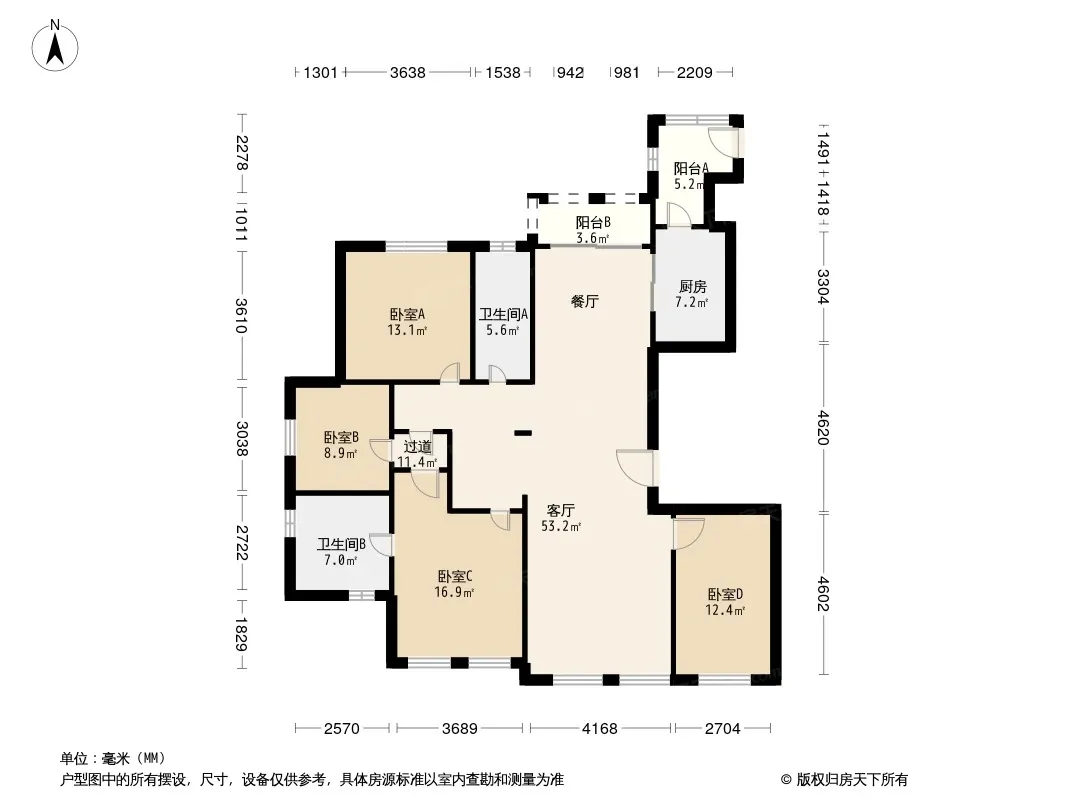 户型齐全,主打明卫,独立衣帽间,双阳台四居