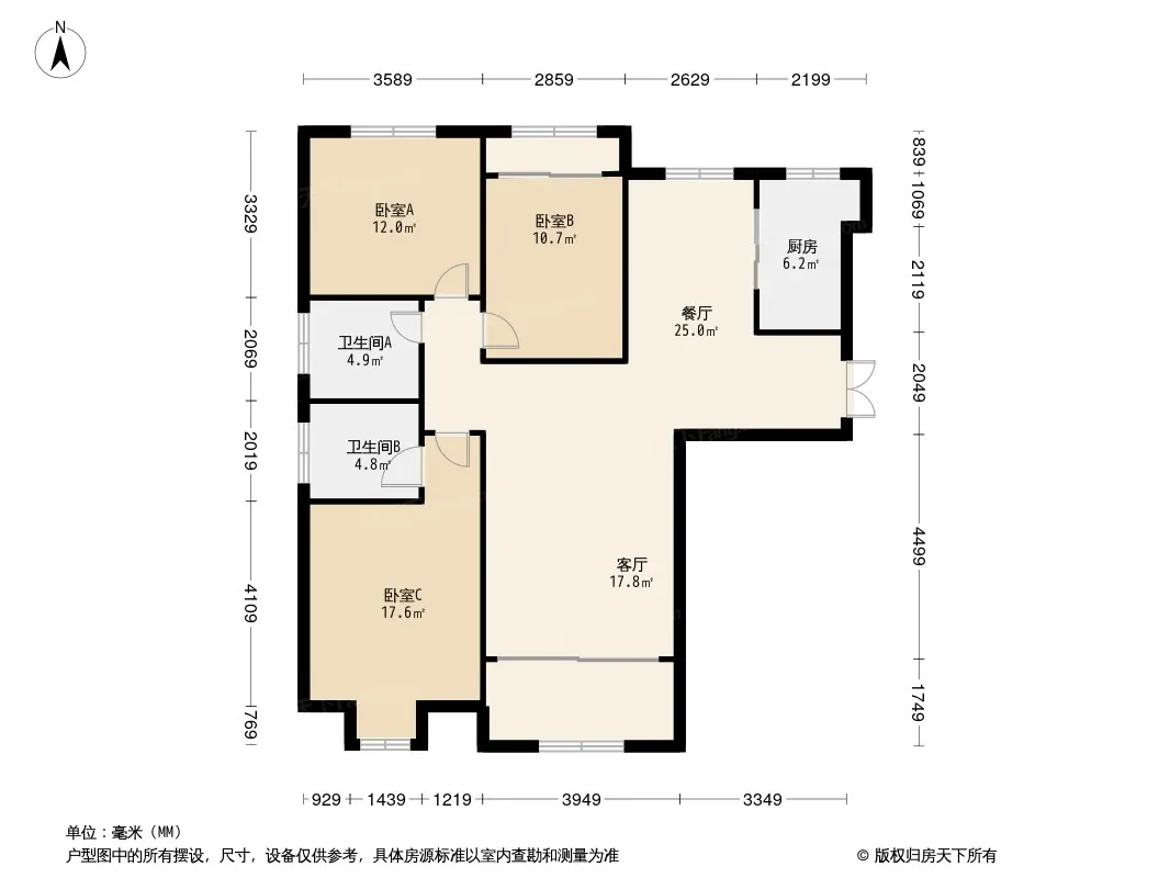 户型齐全,主打南北通透,全明格局,户型方正,动静分离,采光充足三居