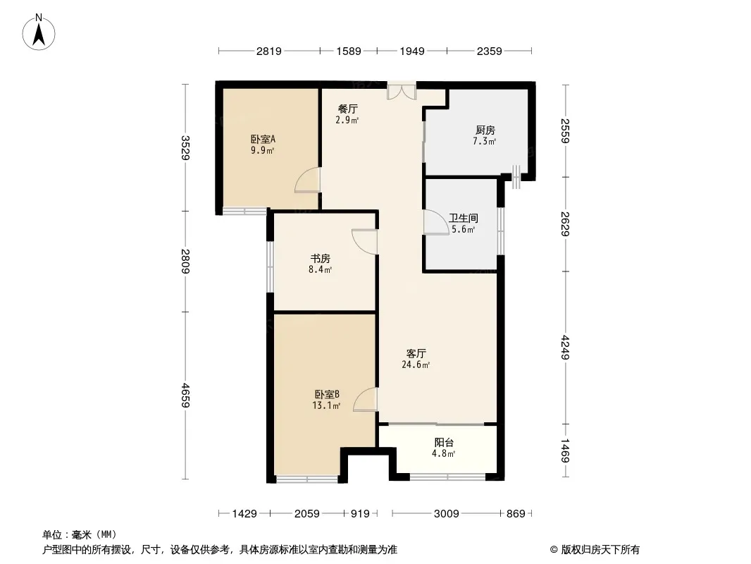 户型齐全,主打南北通透,全明格局,户型方正,动静分离,采光充足三居