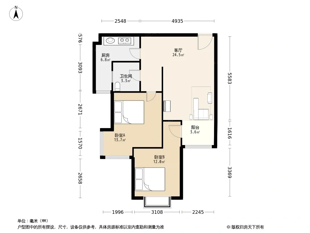 户型齐全,主打南北通透,客厅朝南,主卧朝南,卧室带阳台三居