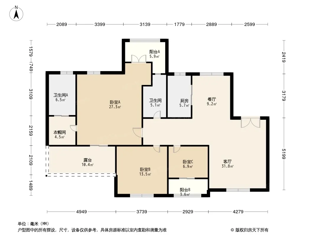 户型齐全,主打南北通透,采光充足三居