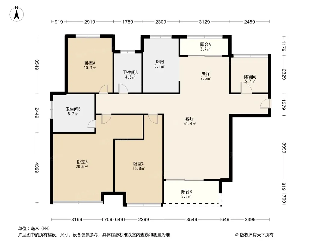 户型齐全,主打南北通透,主卧带卫,双阳台三居