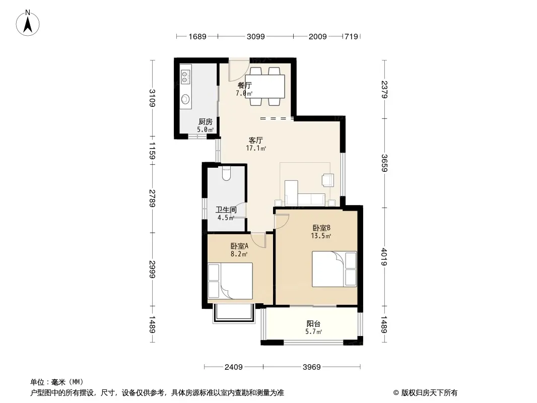 户型齐全,主打户型方正,明厨,客厅朝南二居