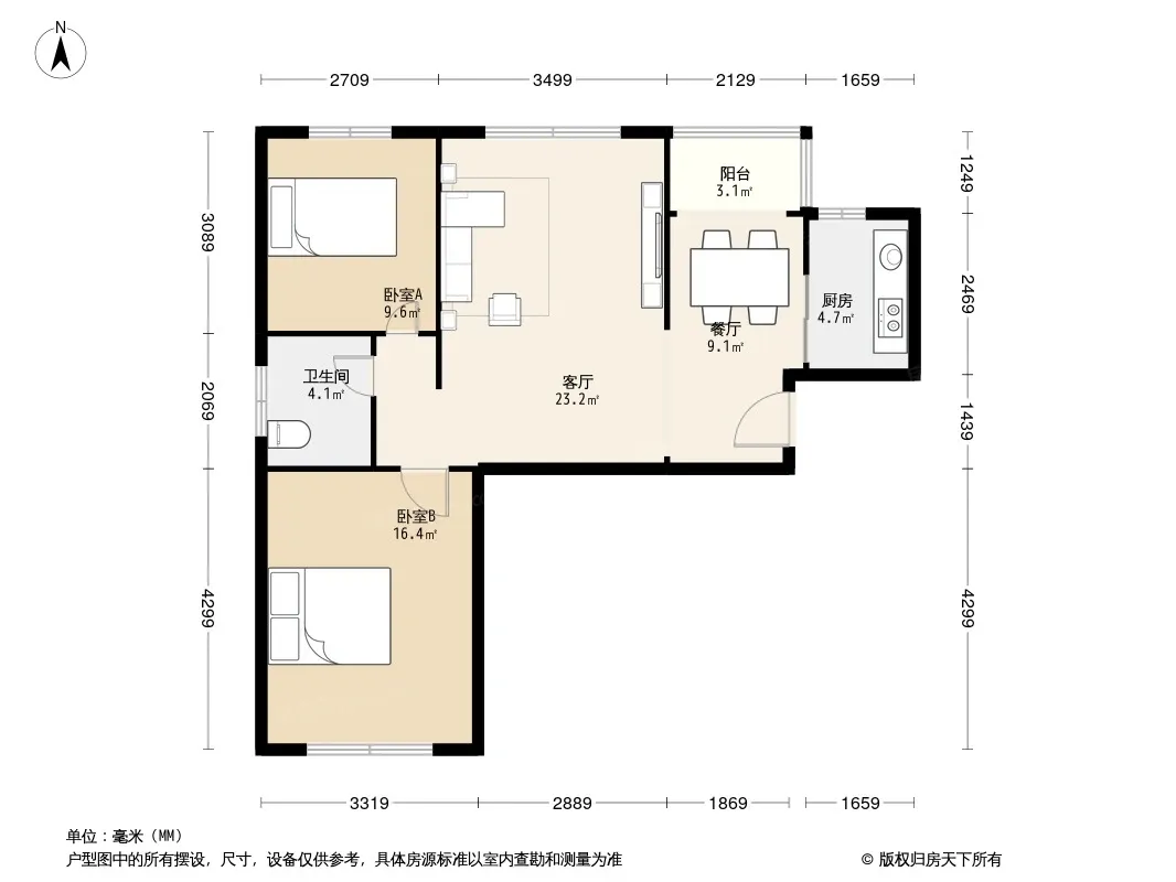 户型齐全,主打户型方正,明厨,客厅朝南二居