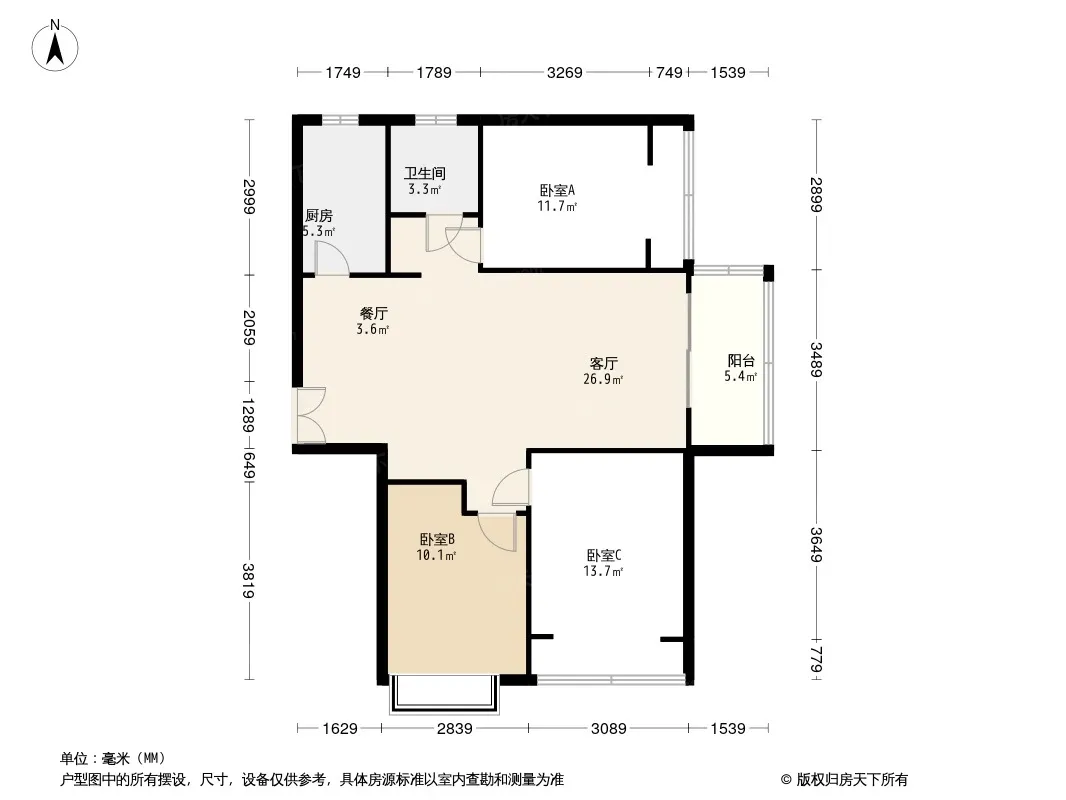 户型齐全,主打南北通透,客厅朝南,主卧朝南,主卧带卫三居
